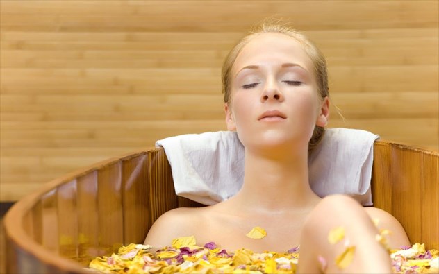 Διαλύστε σε ζεστό νερό άλατα και απολαύστε ένα χαλαρωτικό μπάνιο για ένα καλό κλείσιμο της ημέρας. Τα άλατα ενυδατώνουν το δέρμα και αναπληρώνουν τα επίπεδα του μαγνησίου στον οργανισμό, που χάνονται όλη τη μέρα λόγω άγχους.